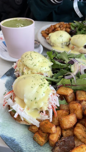 I recently had the opportunity to visit an Asian-owned brunch spot, known for its unique take on classic brunch dishes. Among the most intriguing menu items were the Bulgogi eggs benedict and California sushi style eggs benedict, along with the ever-popular matcha latte.