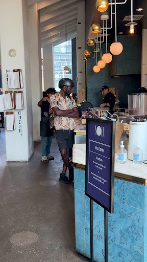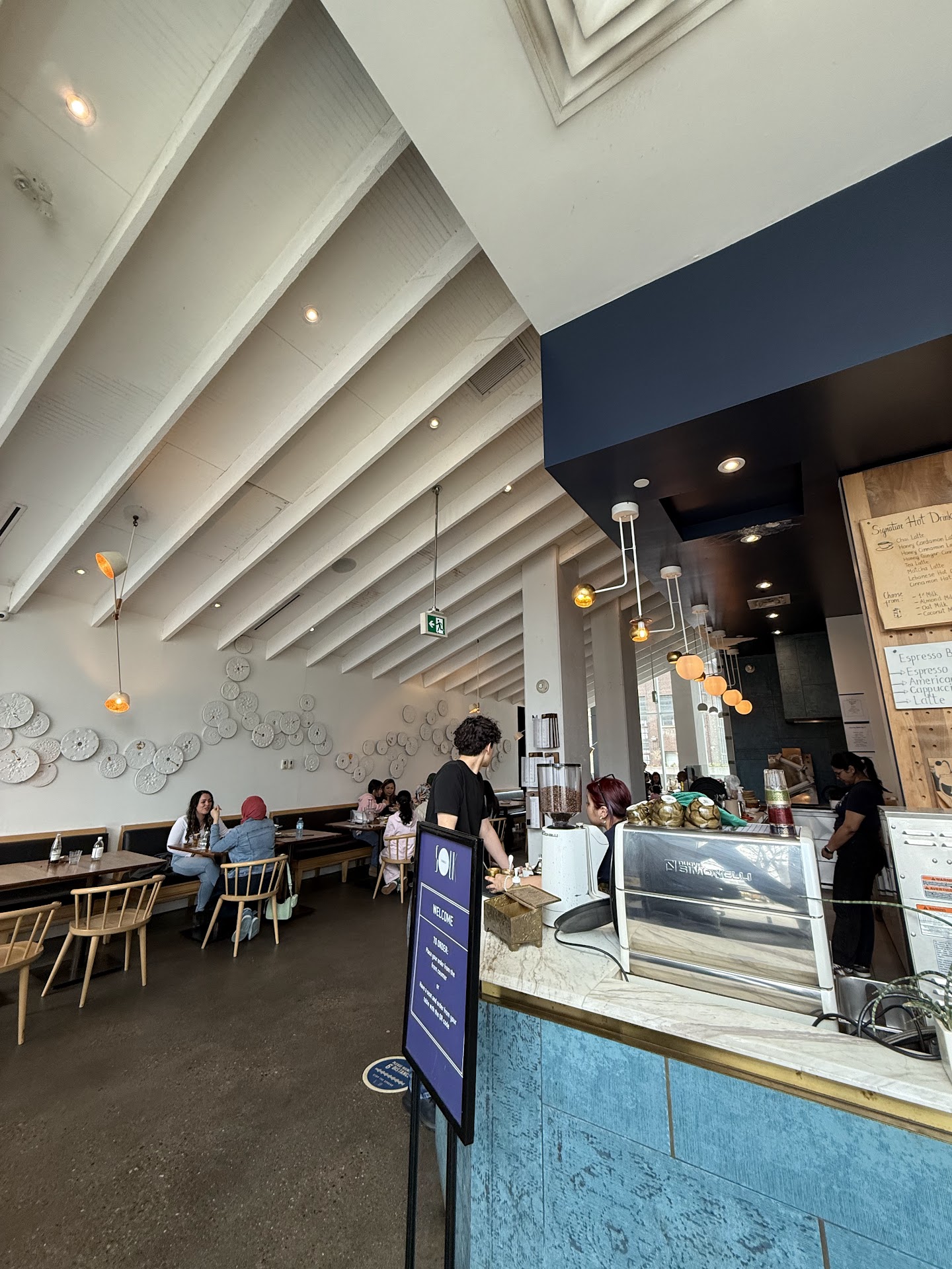 Staff is all helpful and friendly. Atmosphere is clean, minimal, and bright (the opposite of Riverside Tabulé). Too bad the alarm (testing?) kept going off. That wasn't too pleasant but downtown condos seem to do this all the time.
