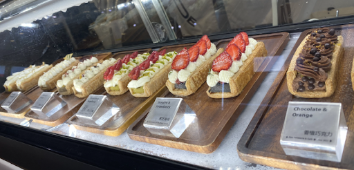 I grabbed the sesame and strawberry Napoleon as well as the golden matcha Madeleine for the pastry, and I grabbed a sesame latte and coconut flat white.