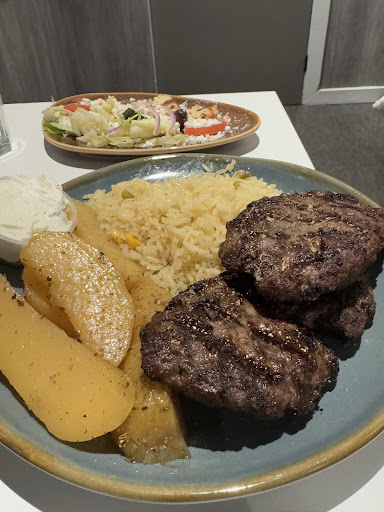 From the moment we walked in, the warm and inviting atmosphere set the tone for a delightful meal. We decided to try the gyro wrap and the souvlaki plate with chicken, paired with rice and a fresh salad. The food was absolutely delicious! The gyro wrap was filled with perfectly seasoned meat, fresh veggies, and a sauce that added just the right amount of flavor. The souvlaki plate was a standout as well—the chicken was grilled to perfection, tender and juicy, complemented beautifully by the fluffy rice and a refreshing salad.