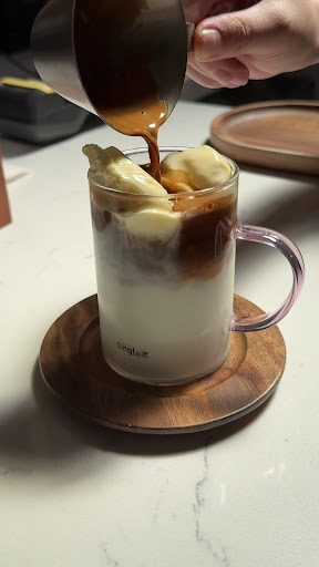 The cafe feels like stepping into a friend's welcoming home. Its multi-room layout offers a mix of intimate tables for two and inviting sofas, perfect for lounging. The ambiance is relaxed and cozy, making it an ideal spot to linger with a warm drink or catch up with a friend in a space that encourages you to take your time.