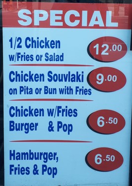 Let's be clear, Square Boy gets 5 stars for the genre of food they serve. It's simple, it's not pretentious, it's quick, and it's just easy when you need a good, filling, satisfying bite. Square Boy is also a little easier on the wallet than most other fares. You can get a generous half chicken with fries or salad for $12, a chicken souvlaki on pita or bun with fries for $9, or a regular burger combo with fries and pop for $6.50.