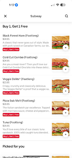 Read moreI used to rate this place a 5 out of 5, the old owner was very nice to talk to and never cheaped out on anything you asked him for. These new owners are awful, they don't even accept any of the Subway deal promotions Subway offers in the app or paper flyers. Being the only Subway in the neighborhood that doesn't accept coupons/promos just rubs me the wrong way and the next thing I'm going to tell you takes the cake. Not only do they not accept coupons/promos, they charge more regular price for the same subs at other locations. For example 1717 Bloor charges $9.99 for a footlong meatball, for comparisons 267 Queen St. West (another 24hr location) charges $8.89 for the same sub and they also accept coupons. In conclusion, don't give these people your business. Go to another Subway franchise that isn't owned by such a greedy owner where you dollar will go much further for the same food.