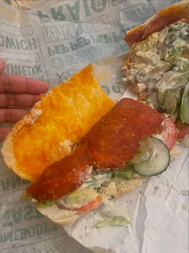When ordering the pizza sub melt, the employee asked if he wanted marinara on it, and he said yes because the pizza sub comes with marinara. I’m not sure why the sandwich was wet and cold when I opened it despite it being toasted. I’m also not sure why there was no marinara despite the employee specifically asked about it. It literally looks like marinara was put on and scraped off (photo). Couldn’t even tell there was cheese on it, there was barely any of the other toppings on it, plus It was flimsy and falling apart. It just tasted bad, and spending money on food for it to be bad and inedible is frustrating and upsetting.
