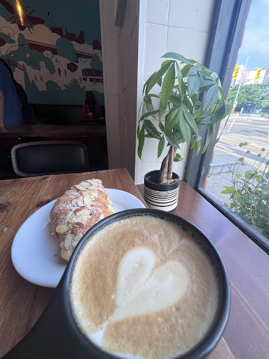 Staff are very friendly and attentive with much selections of savoury and baked goods. Huge almond croissants and proper filling of almond paste. They have sugar free vanilla syrup and lactose free milk. The latte was lukewarm and killed the pleasant drinking moment one needed to be satisfied with having their coffee, also they are not equipped to warm their baked goods only the savoury ones. The ham & cheese croissants are really cheap compared to the usual cafe I go to. The cafe is giving a neighbourhood cafe feel, also has an outdoor patio. There’s no parking, we went across the street and parked at the banks parking lot. Restaurant’s need to have a working washroom for clients and I hope there’s a working washroom for the workers, I am not sure how long the washroom was “OUT OF SERVICE”. It’s unsanitary for clients and staff to not have a proper washroom. I was told by the staff to use the Church’s washroom next door … LOOOOOOLLLLLLLLLLL … I had ordered from Uber for their croissants but this is the first time I actually came in and will...