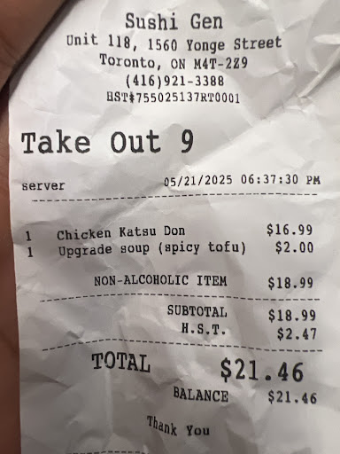 Read moreHad a very bad experience. I get off work and head to sushi gen to pick up my order I made on ubereats a few days prior. I get a missed call on the train 13min before pickup time while on the train. I get off the train and listened to the voice-mail and ubereats called me on behalf of the restaurant to cancel my order thinking it was duplicate. I ordered it a few days before and the restaurant had all day to call me but didn't until the last minute when I am making my way there. I was very frustrated and ubereats Lynn and the restaurant for canceling without my permission and did not even try to call me again to confirm my order. The lady told me to order through her again instead of the app and they can make it in 5minutes. I ended up ordering again but lost my discount code which was frustrating. I felt like the lady at sushi gen canceled on purpose so I would order through them instead of ubereats. The restaurant could have waited for me to arrive to confirm the order if it o ly takes 5minutes to make 4 dynamite rolls. I am very disappointed. I ordered because of buy 1 get 1 free on ubereats and the restaurant could have ripped me off easily by telling me to order through them. Stay away. The food is not that good either. Not authentic.