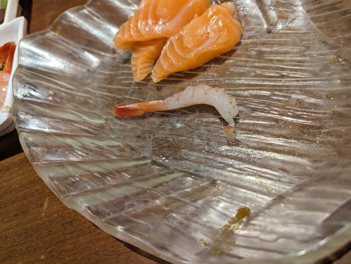 All of the fried or grilled items were kinda soggy and oily again and tasted like they had been left out for a WHILE. Tempura and takoyaki had a hint of sourness which shouldn't be there and super soggy and oily ( seemed to be like this for the whole meal) nothing was crispy. Grilled shrimp and grilled fish seemed meh just a little too salty and fish wasn't super fresh tasting a bit more like frozen but it's kinda expected for a ayce. Moving on, sashimi not gonna lie was ok, salmon tasted fresh enough for a ayce but if you know a little bit of bit of which kind of slices come from where, all the slices we got was basically edge pieces of the salmon ( lots of triangular and "trailing" pieces). The sweet shrimp was ok just if you look at one of the sashimi pics it still had its shell on it :/
