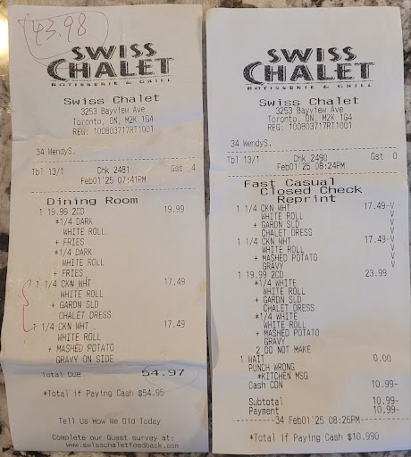 Read moreI'm a regular customer at the Swiss Chalet. Usually I go to the wilson and keele location which is so nice and service amazing.