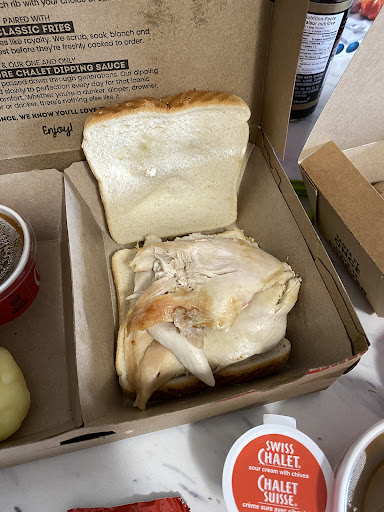Read moreDisapointed. Too bad they dont have a location on St. Clair. It would be easier to get to go to since the locations are too far way out of the way. They took away the dufferin mall location which was within reach for shopping plus. If you were in a mall area within Toronto that would be helpful otherwise it's loblaws roasted chicken for me. They took away my seniors delivery discount. I rarely order because of the expense. It's a once in a while treat. I hate the Chalet Sauce that is the worst tasting sauce I have had. The Chalet Gravy better. There's been times they have sent the Chalet Sauce and it goes in the toilet. The chicken tastes better with Gravy. I don't know why people like that sauce. Take a survey to see how many people actually like that sauce. I wonder how gag how many people like it? đ€ź