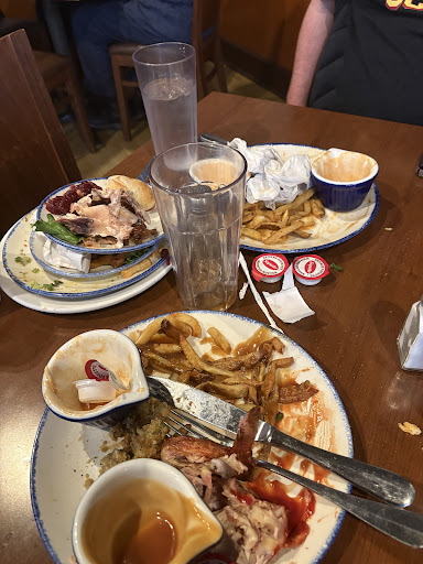 We sat with empty drinks about our whole stay, until asking for another one mid meal. Our empty appetizer plates, empty cups and ketchup bottle sat on the table the whole dining experience as many staff walked by, our server dropped off refills, keeping the dirty plates and empty bottle on the table. We were really hoping to have dessert, but really what was the point, at this time in our dining experience we were so turned off. We sat next to a lovey older couple and watched them wait about 20 minutes just to be greeted. Mind you, this was the first time I have ever seen this location properly staffed. We waited about 15 -20 minutes for the bill as we sat in filth, I assume because she had to repunch everything in….. and behind us a group was being told “anything to make sure you have an amazing experience” as one of the staff changed the tv for them… hopefully their experience was better than ours.