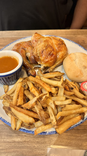 Read moreThe place just reopened last fall and we got take out at that time. When we got home we were kind of surprised as to how small the meal was but we figured it was just since it was new it was a learning curve for them . Dining in the other day was a bit of a shock. Seems only 2 waitresses and a manager working that night so service was a bit slow. My wife and I each ordered a quarter chicken white and when it came to the table we were mildly shocked. It looked like they brought a little budgie bird on the plate. We just kind of sat there staring at it and chuckled between us when the guy at the booth next to us leaned over and said it's been a while since you've been to Swiss Chalet hasn't it? Still what looks to be the regular amount of fries. This shrinkflation thing is getting out of control. Price went way up size went way down and you're basically getting ripped off. We've been to other places and had similar dinners recently and Swiss Chalet is nowhere near worth it anymore. I think many other people have come to the same realization because the place is nowhere near as busy as it used to be and we went at dinner time and there was still seats available. I guess by cutting down on the size and increasing prices they're going to save money and make money but in the long run they don't realize they are actually losing customers. There is many other choices around where you don't feel like you just got to slap in the face. I have talked to a couple of neighbors and they've said the same thing they will never be back and one of the people I spoke to was pretty much a regular there before it...