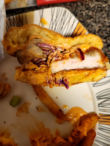 Chili crunch much was not at all spicy (even after ordering spicy) and again lacked flavors. Also the chicken patty was small compared to size of the bun. Same goes for Mac n cheese which lacked flavors and hardly had any cheese in it.