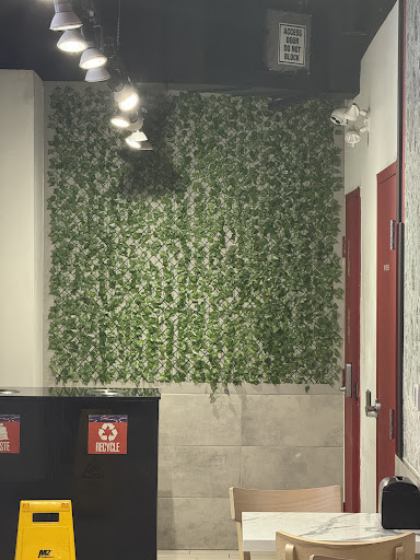 There is no atmosphere at this location. There are a few seats and staff are not instructed to clean and organize them when a customer leaves. Instead, staff are busy with their phones if there is no customer. Someone was also fixing the entrance door and noise of machinery was too loud. Maintenance work should be done during off peak hours instead of 7pm that's the busiest hour.