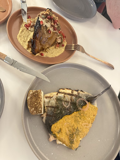 For the main course, we were given a braised cabbage dish and a Branzino. Cabbage dish was quarter of a cabbage, braised and charred on one side. It was topped with hummus and some pomegranate seeds. I ate all of the hummus and pomegranates but I could not stand the cabbage. I had read positive reviews about the cabbage, and I don't normally mind cabbage or its smell but this I just couldn't have more than half a leaf. I didn't find it flavoured at all and the charred parts were not edible. Maybe just a personal preference at the end of the day. Fish is never my first choice at a restaurant so when the waiter appeared with the branzino I tried to keep an open mind. We gave the fish a shot but it wasn't to our liking. I tried the turmeric sauce on top of it but I liked it less than the fish đ we barely touched our main courses.