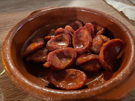 Pros: the server spent considerable time helping us choose tapas the 2 steak and fries tapas (one with mustard sauce and the other with whiskey sauce) were enjoyable the sausage and cornichon tapas was a good match and tasty brussel sprouts tapas was tasty when it finally arrived 45 minutes after we'd eaten all the others the server asked us a number of times if we were enjoying the food but I find it hard to tell the truth in restaurants because I always worry that they will tamper with a replacement dish