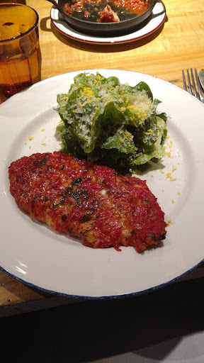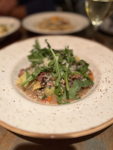 The food was also unexpectedly delicious. Tasted like everything was made with very fresh ingredients and cooked to perfection. We ordered 3 dishes and all were incredible. My personal favourite was Orchiette Pugliese. It tasted like a summer pasta- light and fresh. The ingredients you could tell were of quality and you could taste each ingredient come together for the perfect blend of fresh flavours that were not competing for attention. The rapini and pine nut pesto with the peperoncini was chefs kiss It was not the dish I ordered, but I went back the next day and ordered it for lunch.