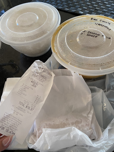 Food - 1: I ordered the General Thairacha. HUGE mistake. I knew something was wrong the moment I went to grab it from my backseat. When I picked up the bag, I can immediately see that there was a spill soaking up the bottom. I frantically looked to see if there was any spillage on my car backseat, and luckily there was none. I opened up the bag to check the container, and found that the container was not sealed tightly, but I could not understand why the bag was soaked on the bottom. Needless to say, I didn't give it much thought, and took it home. I opened up the container at home and took a bite of the food. I immediately knew why and what the fluid was that was sitting on the bottom of the bag. IT WAS OIL!! When I tasted the rice, it tasted like I just ate a spoonful of oil!! The employee who made my order basically DROWNED my rice in oil and that is why and how the spill soaked the bottom of the bag!!