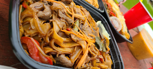 PAD THAI +CHICKEN 3/5 FOUND THIS DISH TO BE TOO DRY. THE NOODLES CLUMPED UP AND STUCK TOGETHER. FLAVOURS WERE GOOD, BUT I WOULD ADD EXTRA EGGS BECAUSE THERE WAS BARELY ANY. YOU CAN GET THIS W.BEEF, CHICKEN, VEGGIE OR SHRIMP.