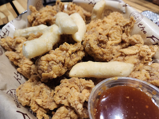 Read moreAfter going back to Korean fried Chicken after so many years we ordered half and half chicken large, it only comes in this size. We also ordered boneless spring onion chicken. All the chicken was great. Tasting, the flavors were really good. I was really impressed with the subtle flavors with the boneless spring chicken and the chiseling chicken. The spicy chicken tasted really good but it wasn't extremely spicy. Really like The rice cakes so chewy and fun to eat. Drinks are overpriced in my opinion, and they do not have proper beer. Only branded beer which is below average. It was a little bit more than mild. Their system to order is without the server. They have this machine at each table which will have all the options you can modify and order from there. The service part is a little bit lacking I would say but the person was decent enough because of their model. It's a service free model. The restaurant is not that big but it has deciding and the tables are pretty close. This is situated in a confusing plaza. Make sure to enter the right plaza or you will end up in the next plaza. The only thing I didn't like was there were two customers who were sitting there for a long time. Even after I paid their bill they were quite loud and they were just loitering. The staff took a long time and kicked them out of the restaurant. I believe that should have been kicked out after 5 to 10 minutes but they were sitting there for more than half an hour or I think 45 minutes which bothered me a little bit. The portions are really good on the large size, so I would suggest to order large first if there are multiple people and then order more if you feel like it. Would definitely go back. I...
