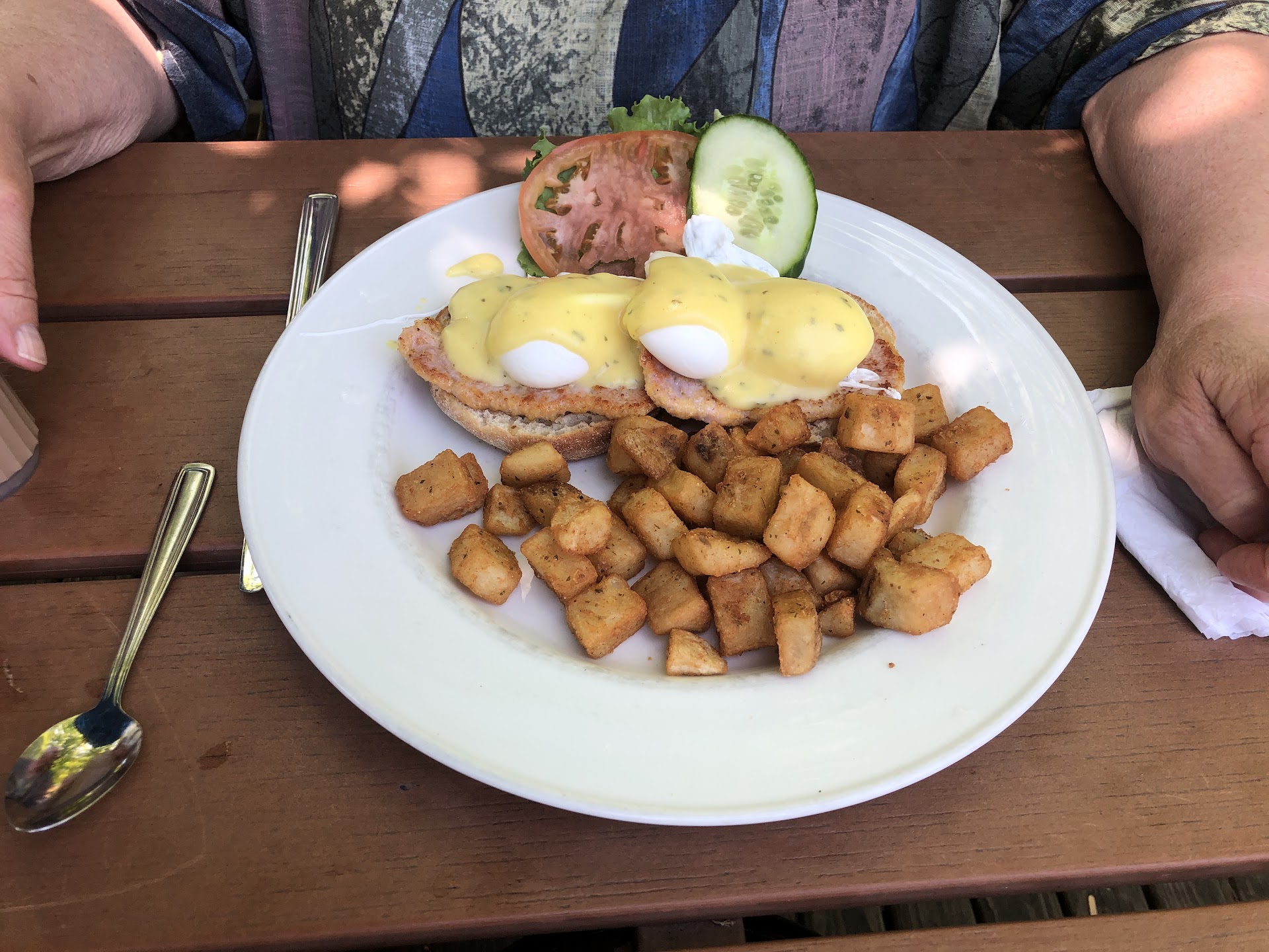 Read moreFor the past FIFTY years or so the Grenadier Restaurant has been an excellent historic venue situated in the centre of one of the spectacular urban oases you could ever imagine. Thank you so much to the Grenadier Group who took over ownership in the mid-1980's for maintaining the huge "tree" in the front servery as the restaurant's tribute to its location in High Park. The menu prices have, understandably, gone up in the past few years but considering the magnificent location and the good food this should be quite acceptable. There is a large outside patio for the cheaper TAKE-AWAY from the servery as well as a lovely shaded deck area for the more expensive DINING ROOM. Meeting a group of my mature (....and not OLD) friends from our local high school our early group tasted a couple of raspberry and blueberry scones ($3). Although a tad dry they were very tasty and washed down with copious amounts of excellent bottomless cups of coffee ($2.50) attended to constantly by our cheerful, very friendly, and extremely attentive and efficient servers. SHOUT-OUTS AND THANKS TO YOU ALL!!!! There are ALL-DAY BREAKFAST as well as lunch selections and we settled for a bit of both. The EGGS BENEDICT ($16) were nicely poached and covered in tasty Hollandaise sauce. The GREEK SALAD ($15) seemed a bit pricey for a salad but it was a proper Greek style, which is hard to find in Toronto. The GRILLED CHICKEN SANDWICH ($17.50) was tender and complemented by a fresh focaccia bun. The CHEESE and BACON BURGER ($16.50) started well but then I realized the star of the show was the thick and meaty strips of bacon and not the burger patty. That turned out to be a somewhat bland and pre-formed affair and not prepared in-house as I had remembered from before. No beer, wine or booze thanks to John Howard who deeded his farmland to the City of Toronto in 1873 on the condition that alcohol would NEVER be served. On the positive side, it does keep you tab...