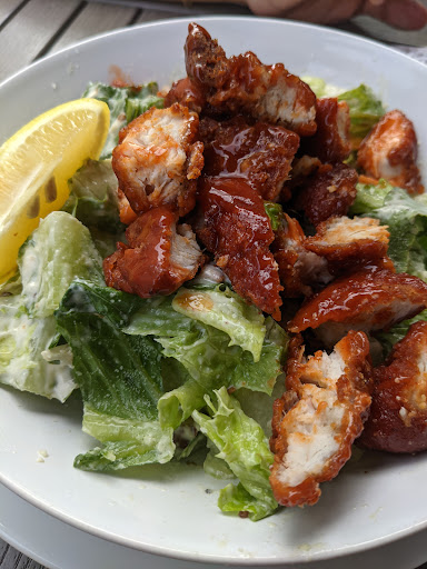 I'm pretty picky when it comes to fish and chips and there's is delicious! Beats any fish and chip joint in the city. Also recommend a custom Caesar salad they make for me and my friends/fam that we all love. Get it with chicken fingers on top covered in medium hot sauce and then a side of franks to pour on top of everything. So good and pictured below!