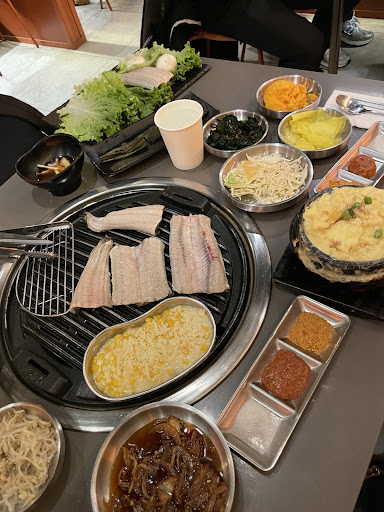 Read moreThis spot having been closed for renovation for a long time, is now open in its new incarnation as a korean bbq restaurant. There are plenty of competitors within walking distance, but if they can keep up this quality they will be sure to steer diners their way! The space is pretty basic, not decorated like some old school street stall, but bright and spacious. Like the very busy "DDN" down the street, their pan has a spot to cook egg and cheese corn. We think the recipe here is a bit better in that these sides stayed moist for longer and were more flavorful. We ordered beef brisket slices and pre-cooked marinated kalbi ribs. Before these came, we got to try their little banchan dishes and they put their own spin on them. The brisket went well with the 3 sauces they gave us, and can be paired with lettuce or pickled radish. The cooked ribs don't go on the grill, and was brought to us in dramatic fashion (a glass dome opened to reveal billowing smoke emanating from the juicy rib slices). Did not expect to see something like this at a bbq place and tasted amazing, almost like at a fine dining establishment. Service was terrific, they grilled for us and kept topping up our sides. Might be because it wasn't too busy today, so maybe they won't be so attentive if it was a full house. This restaurant at its inception has already catapulted itself to the forefront of k-town bbq, a difficult feat indeed. Will go again in the future and hope they can...