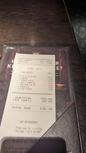 I have been a loyal guest of this Keg location for years. It was my favourite. I’ve hosted corporate events, cocktail hours, and family dinners here. But after Sunday night, this place is dead to me. I will never return—not even if it’s the last restaurant left standing on scorched earth.