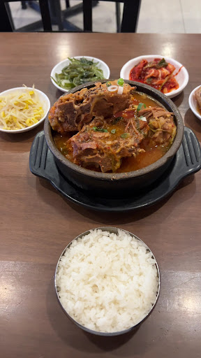 Read moreOpen till after midnight with no signs of a hurry to close, this old but familiar establishment appears to be a local favourite. Packed full on a Tuesday night but with a quick turn around on tables. Service was quick and precise with food rolled out on trolleys every minute as if on clockwork. Got the house favourite which was of course number #01 on the menu: the Pork Bone Soup. It was tasty and worth digging into the bone pieces. Don’t be shy to take it apart and suck all the meat and marrow off. The meat falls off the bones buy the way. We also had the chicken bi bim bap on the recommendations of diners on their way out. And THAT was the item de resistance. It was absolutely tasty and the essence of toasted sesame seeds assaulted my senses all night, there were also sides of kimchi, sea weed , sweet potato, fish skin and tap water of course. Fees like an initiation rite into...