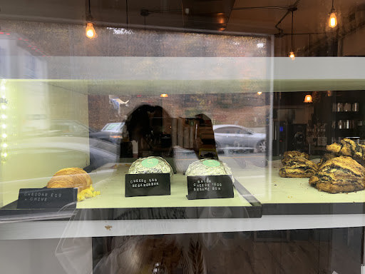 It’s a walk up coffee shop with their food “menu” displayed on the window, no drinks menu though. I also read some reviews that they sell out of stuff quickly but they had quite a few items still available. They had some breakfast sandwiches (made to order) and lots of pastry options. Docking a star because there’s no prices listed anywhere :(