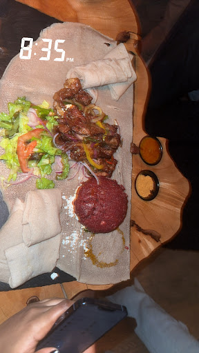 Now, let’s talk about the food! The menu offers a fantastic variety of dishes, including iconic staples like injera, doro wat, and misir wat. We ordered the meat platter and Bula be kitfo , and it was nothing short of incredible! The flavors were rich and complex, and the spices were perfectly balanced. Each bite felt like a journey through Ethiopia’s culinary heritage. I will leave pictures of the dishes we tried, because I don't know all the dishes but we enjoyed our time. The owner of the restaurant took time as well to talk with us and educated us about Africa, Ethiopian fashion,clothing ,colors and how they were being copied from the big high fashion designers that did not show homage to the mother land. All in all, we had a ball