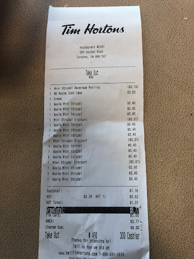 I was a regular at this location. Interesting ordering the same thing everyday and depending who's taking your order at the drive thru, the price to my same order was aways inconsistent? They never give you a receipt, so I could never figure out why? I stop going to this location because one day the lid to my tea wasn't on right at the drive thru and I burnt my finger and it blistered immediately. They closed the window to the drive thru as I was screaming in pain!!! I called the store to talk to the manager. He asked if I wanted ice and he'd talk to the lady at the drive thru. I insisted in being compensated, and he granted me 2 combos. He took down my number and said he will tell his workers my name and give me two free combos and that when I use up my 2 freebies he would call me to say I used up my freebies. Well I never have gone back in almost a year and i never used up the 2 freebies and never received a phone call to ask why I didn't use the 2 freebies or how am I doing. Plus, the same lady who handed me the tea with the lid loose, also tried ripping me off one day, I gave her $20 and she gave me back change for a $10. I caught on and I told her and immediately she handed me the $10 that she was holding on too in her other hand, she never questioned I gave her the $20 instead of the $10. I'm just curious if the owners care? Let's see if I get a response. I'm glad that Tim Hortons is getting a bad rap from the media, one last...
