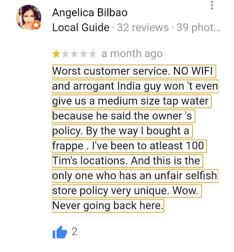 I hope this location takes more care in ensuring that all customers feel safe and respected, especially when clearly using the space...