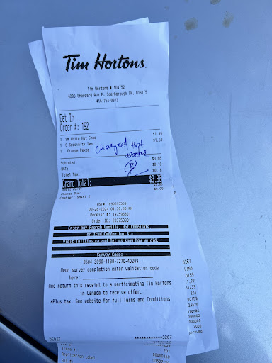 Read moreI have been coming to this place for over 20 years. I used to spend $100-$200 a month at Tim Hortons. A few years ago, I stopped going to Tim's altogether because I was consistently disappointed in the constant messing up of orders, problems understanding staff, slow service, and watery ice caps. To make things worse, they weren't even allowing patrons to use the wathroom. I don't know how that's not contrary to city by-laws. In short, like many locations, this one was a disaster.