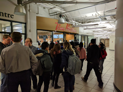 Read moreThey have a great service and the staff are very friendly. They have a full menu like other Tim Horton's, but they often are sold out on a lot of things. As well, they have no hot food one hour before closing time. For such a large campus, the staff are often rushing and stressed due to long lines. Not only do you have to wait to order (which could be about 6-8 minutes), you also have to wait for your food if you ordered from the deli (I had to wait 8 minutes a couple of times). If you're in a rush, I suggest you don't go. I don't believe you can order from the Tims app, but they have a U of T mobile ordering app (Transact), but you cannot collect points on it. The staff does their best to accommodate you and provide the best service possible,...