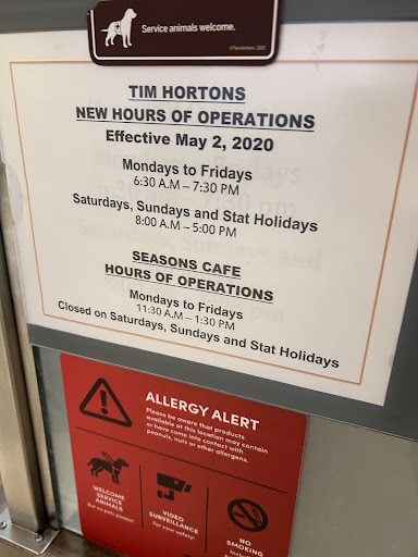 No washrooms at this Tim Hortons either, luckily one can use Providence’s washrooms located nearby behind the circular concierge front desk.