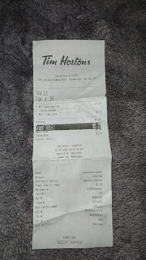 Read moreI am writing to express my extreme disappointment and frankly, shock, at the appalling service I received the morning of , May 11th 2025 (mother’s day), at Tim Hortons 3353 Lawrence Ave East. I placed an order for six breakfast items, and to my dismay, every single one was prepared incorrectly.