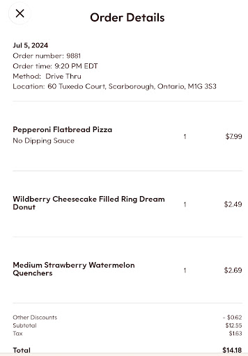 Read moreI went to pick up my Too Good To Go (TGTG) order from this location for the first time and I must admit that the box contained enough varieties based on the reviews I checked in the app. I would however request you to kindly be welcoming to the customers as I faced a girl (Indian) with bad attitude working there. I completely agree that you may be going through a bad phase or having a very bad day, but this doesn't mean that you make others day go bad with your attitude too. I'm an Indian too and have seen girls especially from regions like Punjab, Delhi and Haryana having so much attitude working at Tim Hortons as if they own the restaurant and Tim Hortons is only surviving because of them. Nope! Nope! If you people cannot work then GET OUT!! However, I cannot encourage enough the other friendly staff (Filipino I believe) who are superb in customer service and very fast in keeping the line moving. Whenever, I visit this restaurant in the morning, it's superb busy with long lines but kudos to the hard working staff there to keep things moving and under control. My dear owner, I would highly recommend this place to anyone and please add few more cookies or donuts or pastries in my Too Good To Go (TOGO) order as I'm your...