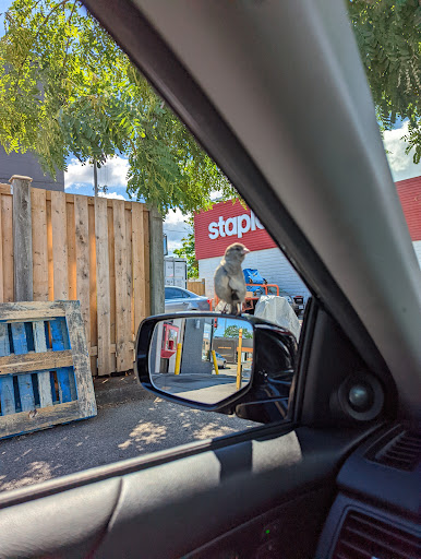 The pic I'm sharing is from us waiting, as told by the server, by the garbage bins ( 38 mins, twice getting out of the car, walking to the drive through window and asking "um where is it" all for an English muffin and a chocolate chip muffin) @timhortons ( Keele and St Clair). This bird kept flying up, sitting on both driver and passenger mirrors. It is obviously used to people being stuck in this corner , waiting interminably.