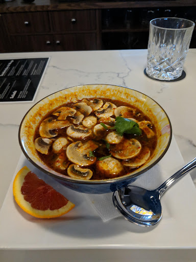 Read moreWait staff was excellent; offered us extra plates when heard we are sharing the entrees. Food was very good; south indian curry wasn't sweet, was hot both spice and temperature. Rice was fluffy. Papad was a little stale overcooked and nan is the toasted packaged variety but both were good enough. Mango salad was great, but the dressing too sweet. Jambalaya very good also. The spicy sour soup was fantastic -had lemongrass and likely TomYum paste. Two suggestions for improvements: 1.) Stop including a paper napkin under the curry pot. Its the same white as both the plate and the rice, so I inadvertently shredded it and mixed into the rice, thinking it was rice. 2.) The large sculpted bases of the booth table legs aren't doing you any favour. Changing these to flat 1/4" thick steel discs, 14" or 16" diameter (assuming the tables are supported by the wall) would provide tons of easy access and lots of room for boots, shoes and the clean-up mop. You might even try just the leg with no base at the floor whatsoever, if you support the tabletop strong enough at the wall (braced against twisting as well as vertical load). Shouldn't...