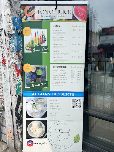 Ā Ā Ā Read moreI recently visited Ton of Juice and was thoroughly impressed by their offerings. I tried several of their smoothies, each one bursting with fresh flavors and perfectly blended. In addition to the smoothies, I sampled their Afghan food, which was absolutely delicious and had a wonderful, authentic taste. The combination of refreshing drinks and mouth-watering dishes made for a fantastic dining experience. The staff was friendly and the atmosphere inviting, making it a place I will definitely be coming back to again and again. Highly...