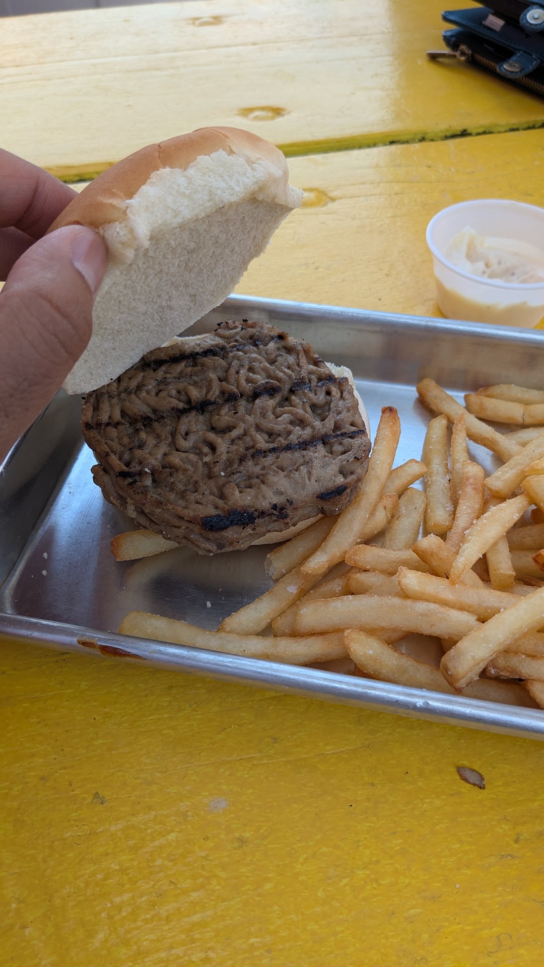 And the burgers: Yeah, that's not beef. That's... something. I'm not entirely sure what, but if I had to guess, I'd say it was a mix of filler meat and regret. As for the taste, well, let's just say the best thing I can say is that it was unforgettable, but not in a good way.