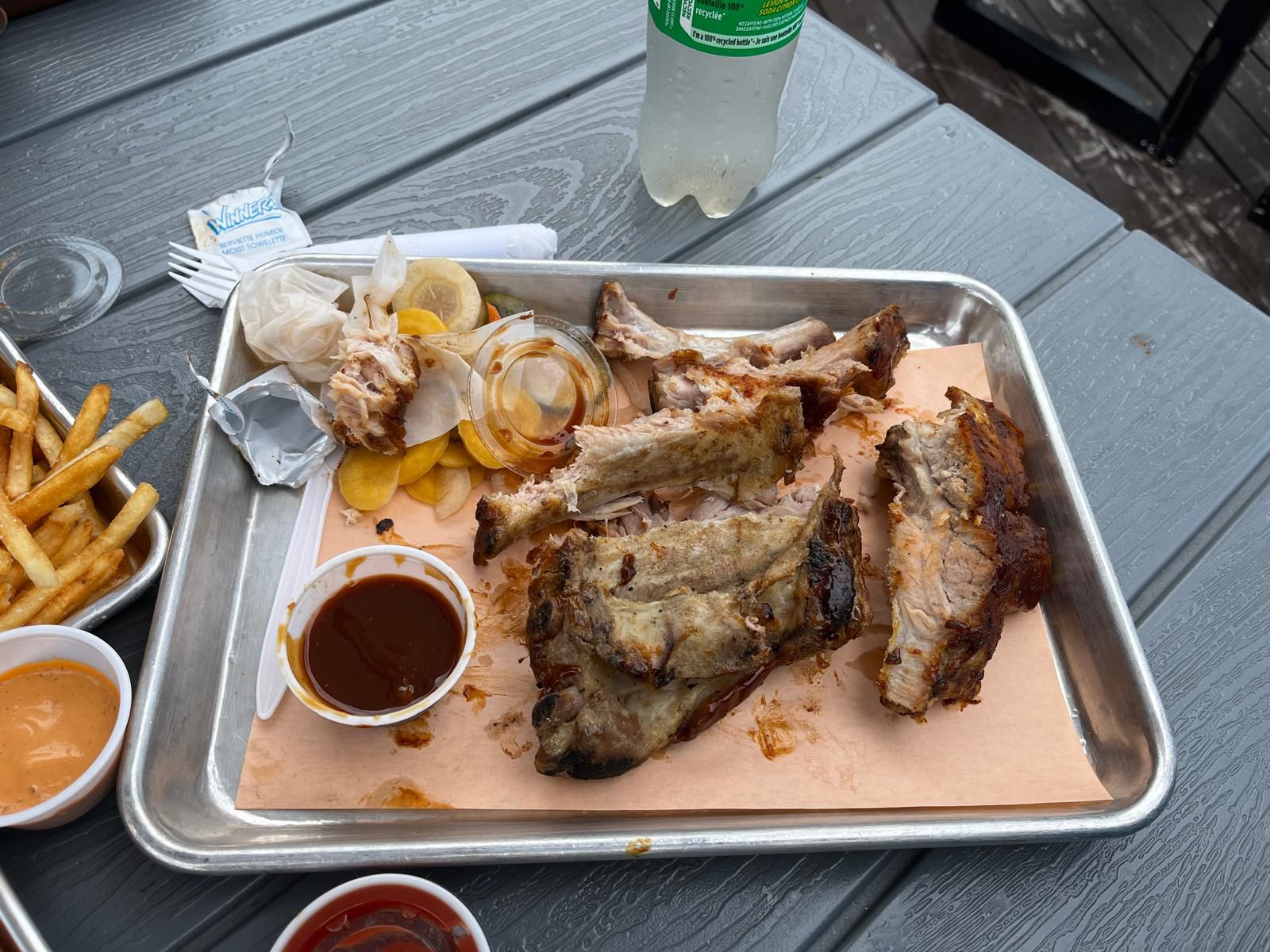 I ordered the ribs ($27), fully expecting smoky, juicy goodness with BBQ sauce dripping off both sides. What I got instead? Ribs so dry they could double as sandpaper. No sauce on the other side & a few strokes on the top. Not even full coverage. I asked my daughter to go ask for an extra sauce and they declined to give her one saying, "We do not just give out free sauces". LOOK AT THE PIC. YOU DIDN'T EVEN SAUCE MY RIBS! (My wife then stepped in and got me the sauce in the pic). DRY DRY, I'm talking Sahara Desert levels of dry here. I'm pretty sure these ribs were cooked sometime back in the prehistoric era and then reheated by “Chef Mic” minutes after my order. They were so dry, beef jerky would've looked at them and said, "Whoa, maybe hydrate a little?" Even the birds circling outside took one look and decided they'd rather starve than touch those ribs. If you see the pic