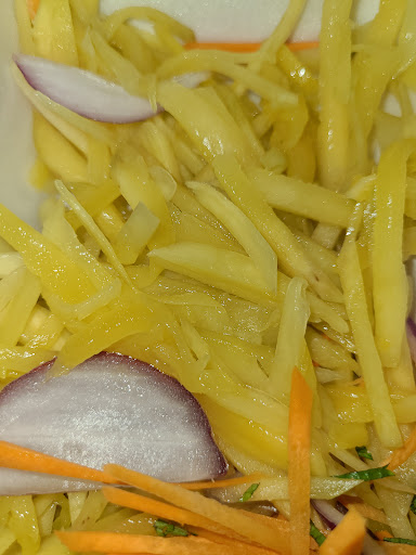 Truly I would give this zero if it was possible. The food took an hour to arrive, the driver waited at the restaurant for over 30 min once he got there! This restaurant was a 7 min drive from our hotel!!! The food was extremely disappointing. The Mango salad, rotten Mango, looked and tasted old. The poutine came with rotten sour cream, visibly curdled (pictured). The pad Thai, as my co-taster described perfectly, tasted like the smell of a Porta potty, not ideal as well as missing the peanuts and wilted greens. The fried rice had virtually no flavour, it tasted like the paper bag it came in, the colour was extremely Grey. The spring rolls came free with our order, but tragically were also flavorless. Overall the only part of our meal that was enjoyable was the bottle of peach pure leaf tea 🙃. There were two of us, very hungry after not having eaten ! Both left hungry with rotten food tasted, the total was around 70$. 0/5 would literally...
