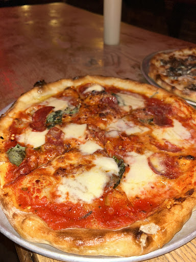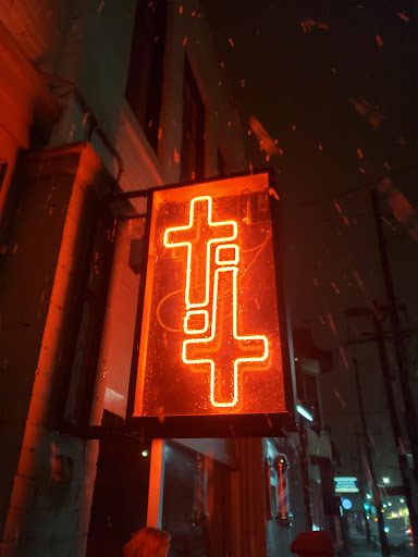 This is a speakeasy, something I had never gone to, and in the past had only heard of in passing whispered rumors. Needless to say, I was intrigued. I was there for a friends birthday, and I had a great time. If you have never been, then I won't ruin the suprise as to how you get inside. Just be sure to look for the glowing red crosses upon arrival, as that is the only indicator ( along with the inevitable, short, line that forms beneath it and faint writing on the door) of where this place is. Once you're in (yes there is coatcheck if you need it) you go straight to the dance floor, or if you preffer, to the bar. They make designer cocktails (and rrgular cocktails and wine and beer and shots, etc) that are both cute and delicious. If I'm being honest the drinks cost a lil more then I would like to pay for a fancy cocktail, prices ranging upwards from $12, but they are delicious...and it is a speakeasy...and apparently thats a normal price range for a drink at this type of establishment. 🤷🏿♂️ After you procure your libation you can try going to the dance floor, although its probably best you don't since you probably don't want your drink all over the floor, as the dance floor can get very crowded, lots and lots of fun, but not a safe place for filled to the brim beverages. Instead, wander over to a high table and enjoy your drink in peace. Better yet, if you know you are going to be showing up with lots of people, much like the birthday party I attended, you can arrange to have a super cozy and comfy booth. Best part of the booth, is it has a much more appropriate sized table to accomodate the best part about this place...which is...of course...the artisan pizza that they make fresh in house to order. Yes they also sell pizza. In fact...thats the only food they sell. Why? Because they're smart. That said...I am going to have to go back and actually taste it (I am on a diet at the moment and couldn't have the carbs and fat and the calories le sigh😓) and leave a detailed review of my experience. Till then, I hope this review encourages you to...