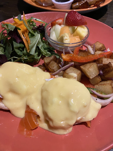 I had the foccacia chicken club sandwich and felt it was pretty yummy. I ordered it without bacon and tomato and they got it right :) I was really happy with the food I got - it came with fries (extra crispy, even after a 15 minute walk in the heat, which is seriously impressive!), mixed greens and a small fresh fruit cup. The fruit cup alone would've cost $2 or $3 if I'd bought it from a store, so the whole meal at $12+tax seemed like a great deal to me.