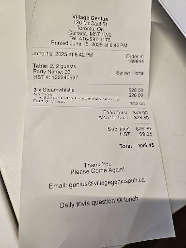 We received the beers and the Nachos shortly after, but the Fish & Chips didn’t come for at least 20 more minutes. While ordering another beer, we asked Jill to check with the kitchen. About 10 minutes later Ilona brought the Fish & Chips but without the beer, and began complaining that we confused her by changing tables. This was very uncomfortable, especially since we had asked permission before moving and were polite throughout. Considering how quickly the Nachos and beers were served, it was clear the Fish & Chips order had been forgotten, yet she chose to blame us instead.