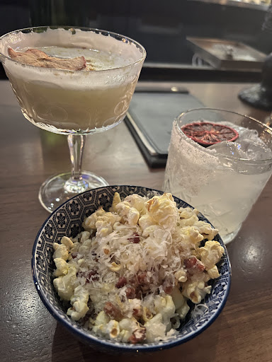 Read moreWhat a freaking little gem this place is. Off the beaten path, but still adjacent to all the action!!! The space is cool with nods to pop culture throughout. Two very comfortable nooks flank the doors at the entrance where you can chill with decent sized parties on plush couches, and chairs. Ample room at the bar and long hightop tables through the middle of the space with banquets around the perimeter. The staff are exceptionally friendly and all astute at crafting the creative signature cocktails, or classics you crave. The ingredients are quality and every detail is well thought out and brilliantly executed. I love the forbidden lady, the anthropologist and their spicy marg is wonderful (those are all I have tried). These are cocktails FULLY worth the price tag. On a recent visit I tried the popcorn - fresh popped with grated manchego, lemon zest, and small bits of cured chorizo - delish!!! I will most definitely arrive next visit with an empty stomach. I love this place and I’d love everyone to know about it… just don’t take my...