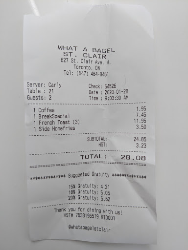 And I have been to other What-A-Bagels before so I know corporate training must be good enough.