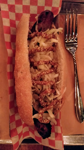 Ah, now the food. I split the $24 Barese wvrst for two (pork, herbs, garlic, cheese?) with a friend. It was average. Meat was slightly a bit too fatty for us, a little greasy. I enjoyed it, but it was getting a bit too fragrant and strong at the end and we couldn't finish it. It's a decent size for two small eaters or one big eater. Food took fifteen minutes to come out. I wish I had picked game on a bun.