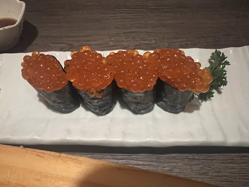 We visited Yangi Sushi on the Danforth as a group of six. At first the server looked surprised and mentioned she didn’t have a table for that many people, but when we asked if we could split between two booths she kindly agreed. A moment later a man picking up takeout mentioned she was the only server working and very busy — despite that, she did a fantastic job and kept up really well throughout our meal! All the food was extremely fresh and tasty. It’s definitely on the pricier side, but the quality was there. We ordered the Yangi Boat for 3 ($94), plus Kimchi, Vegetable Tempura, and two orders of Salmon Roe. It ended up being far more food than we expected — the sushi boat alone would have been plenty for three people. We even needed takeout containers for the leftovers. Our bill came to $183 for three people, which reflects both the generous portions and the quality. Overall, a delicious meal with great service under pressure — we’ll be back, but next time we’ll order a...